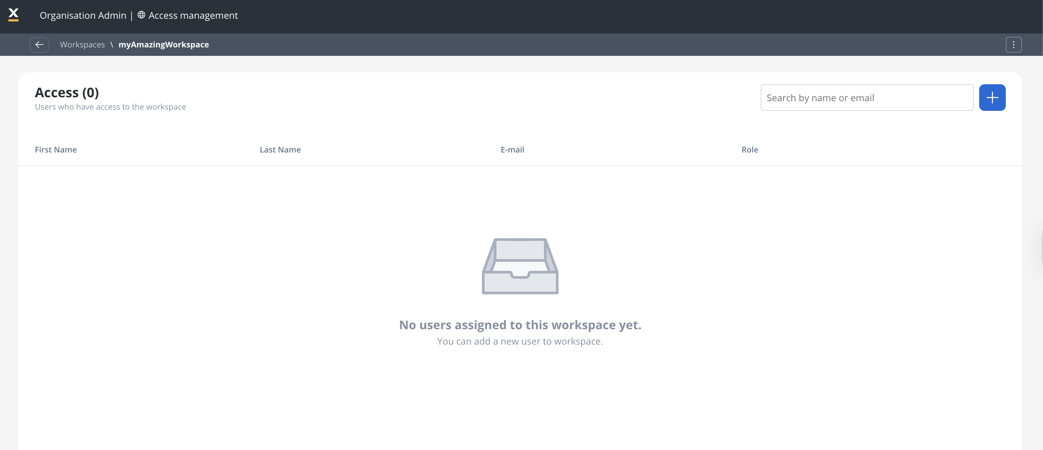 To add a user to a workspace, and to assign a role to the user, you need to go to Organization settings page and select your desired workspace, then add the user to the workspace and assign the role to the user.- Workspace admin: Manages all workspace level resources including users, roles, themes. Can configure access and content, but cannot manage organization-wide settings.