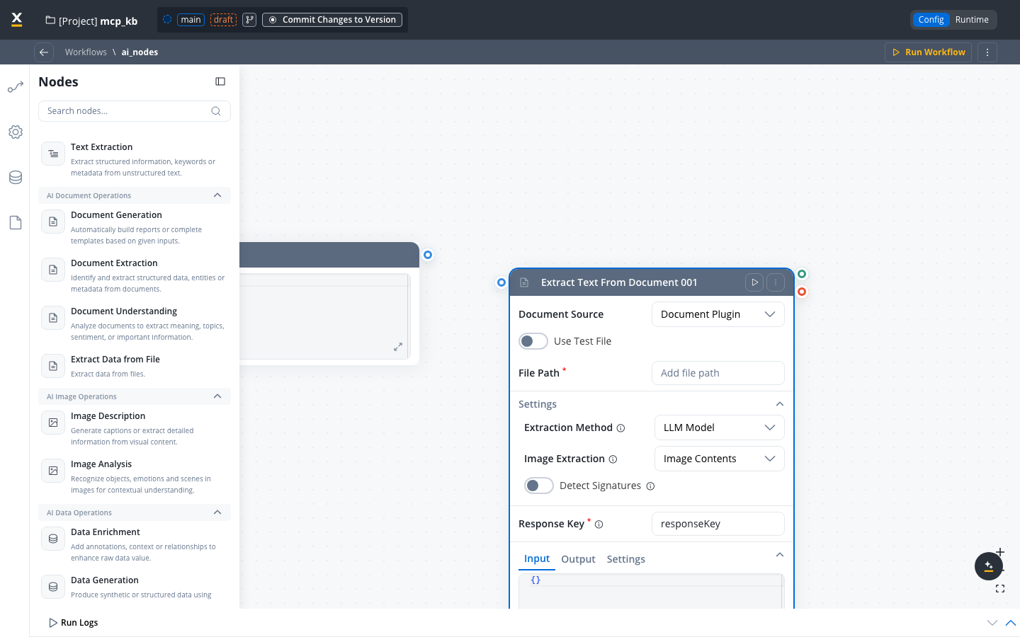 The Extract Data from File node extracts text and structured data from documents and images within Agent Builder workflows. It supports multiple extraction strategies so you can balance accuracy, speed, and cost based on your document types.Supported file formats
