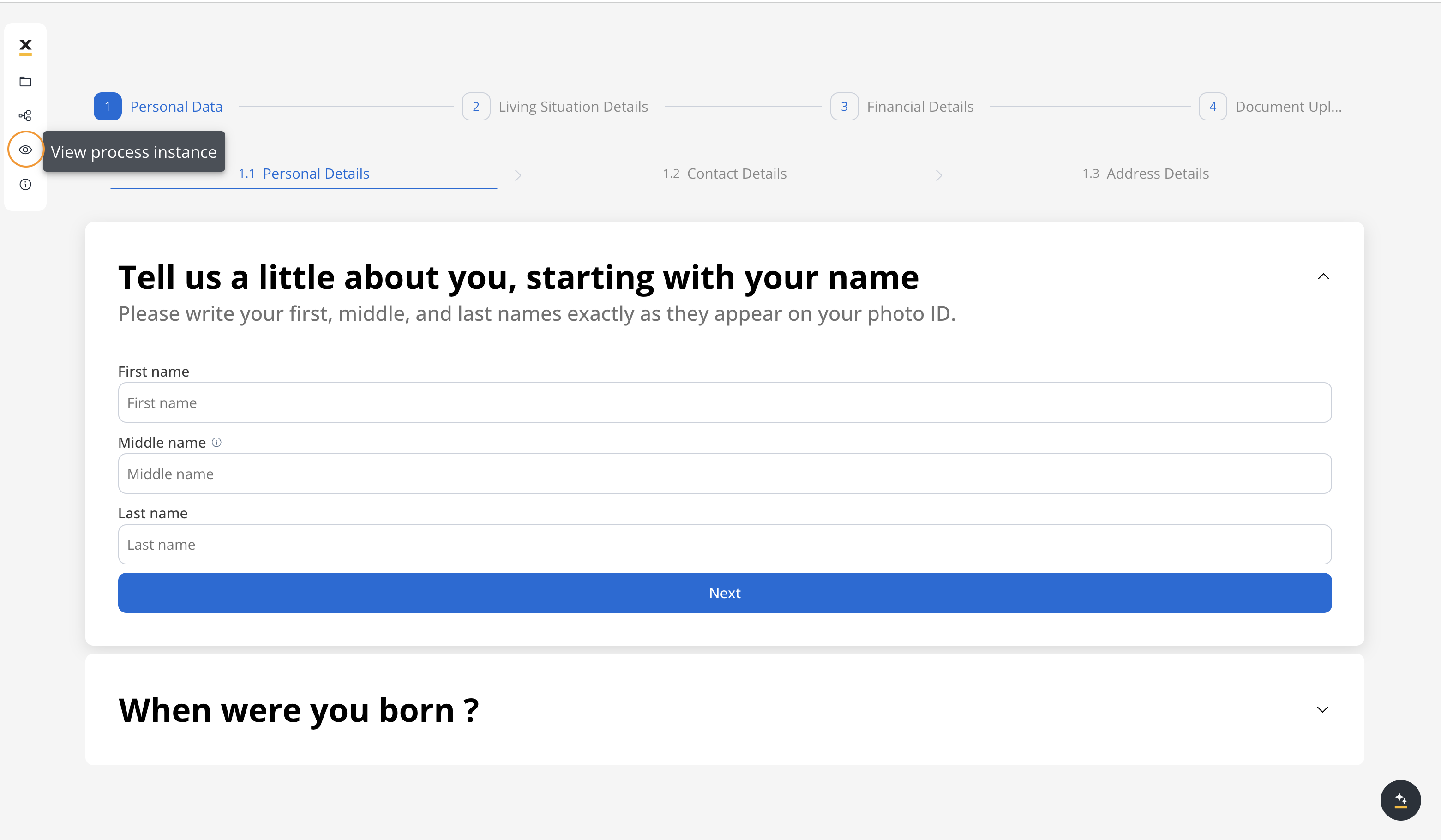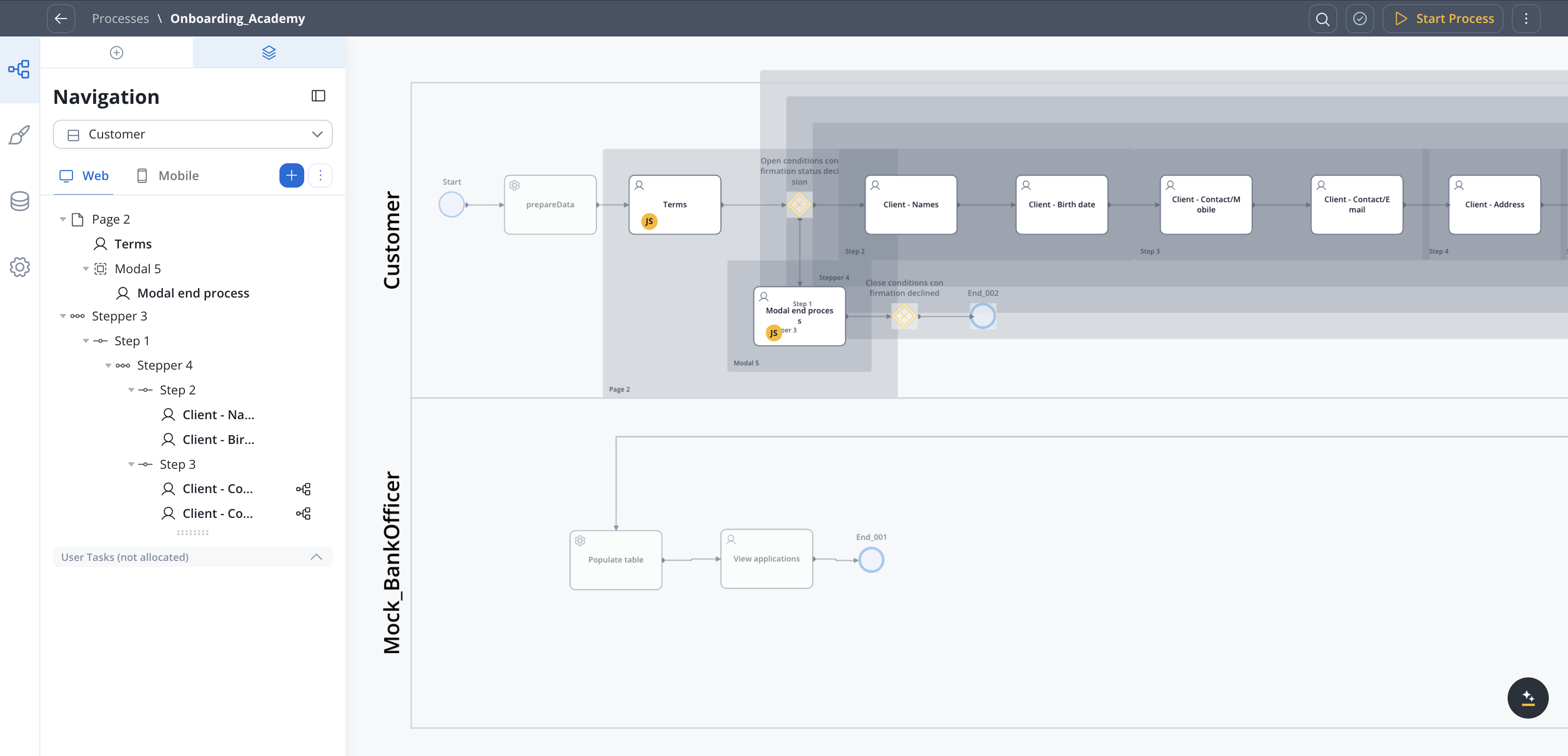 The process is the core building block of the platform. Think of it as a representation of your business use case, for example making a request for a new credit card, placing an online food order, registering your new car or creating an online fundraiser supporting your cause.