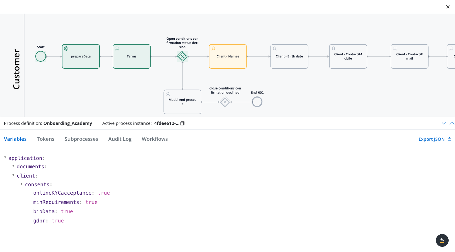 - Monitor execution: Watch how tokens move through your process and verify all paths work correctly