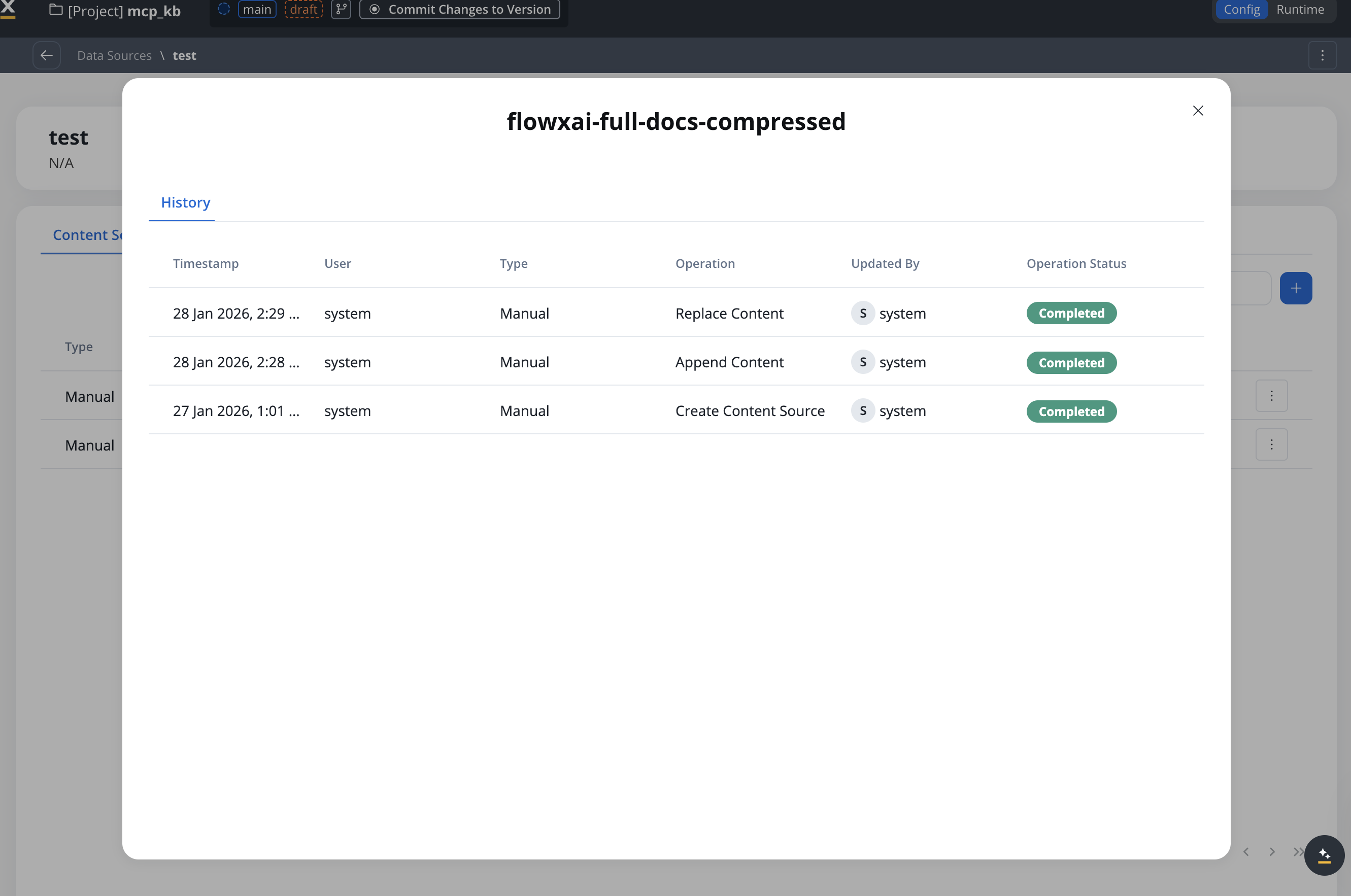 | Delete Content Source | Removes the content source and all chunks |