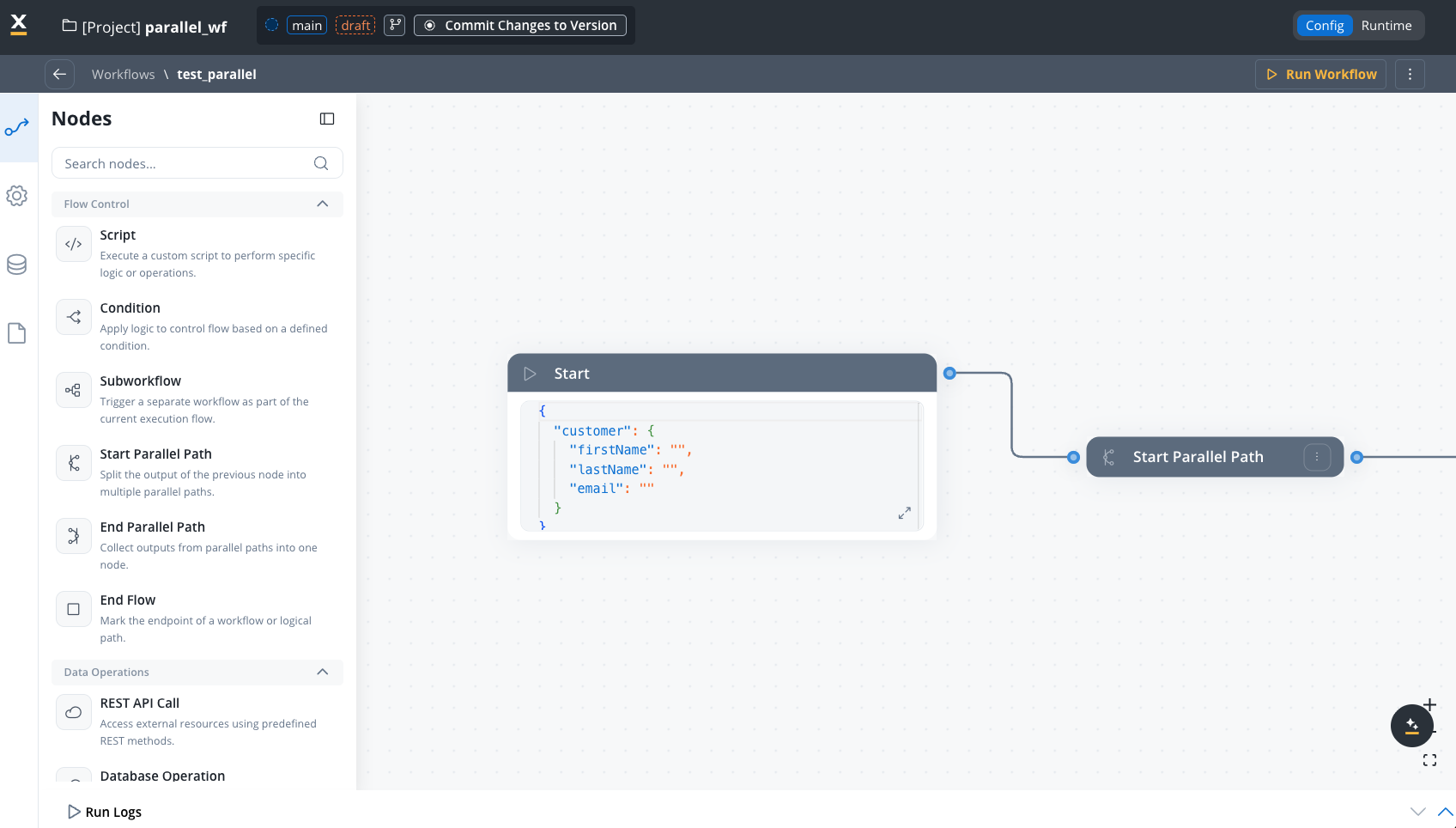 - Output Parameters: Defines the data structure returned by End Nodes. Currently, output parameters work as-is (you can manually configure them), but automatic pre-filling from output parameters is planned for future releases